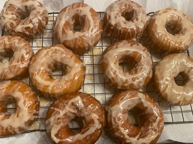 You can dislike veggies, meats, spices, even chocolate (if you’re a little crazy), but it would be hard to find someone who doesn’t love a good donut. Round donuts, filled donuts, twists, crisps, fruit flavors, custard, creme, hot right now, dunked in coffee, there are so many to choose from! But when you live in a small town, a really good donut can be hard to come by. That’s why I tried my luck this week with a little flavor inspired by my love of warm spices and breakfast foods, French Toast donuts with a maple glaze!